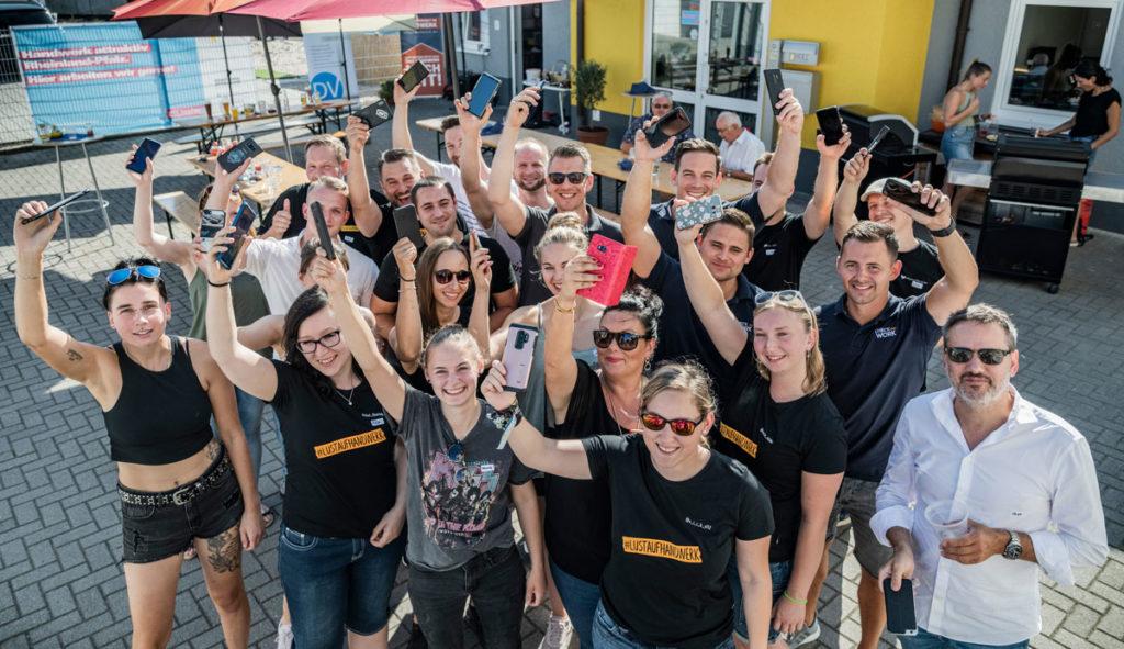Mit Spenden von HILTI Deutschland, dem Start-up MemoMeister, der HWK Koblenz, der Deutschen Verrechnungsstelle Susanne Nies und Holl Elektrotechnik GmbH, wurde für Speis‘ und Trank gesorgt. Nachdem das durch die Handwerkskammer Koblenz gesponserte 20 x 4 Meter große Wanderbanner zu #lustaufhandwerk auf unserem Dach befestigt war, machte das Grillfest in unserem Heimatort Bobenheim den Auftakt.